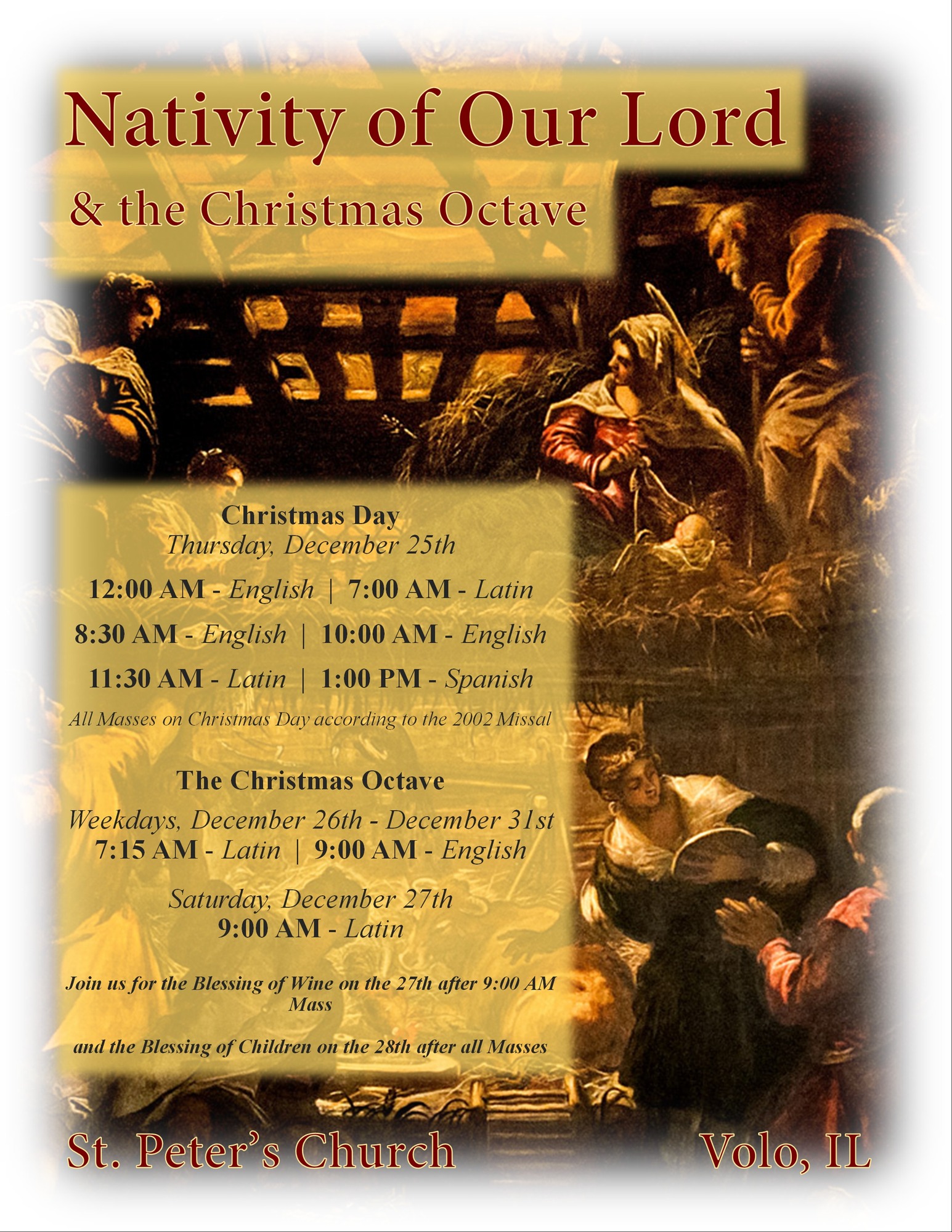 Christmas MASS & OCTAVE SCHEDULE